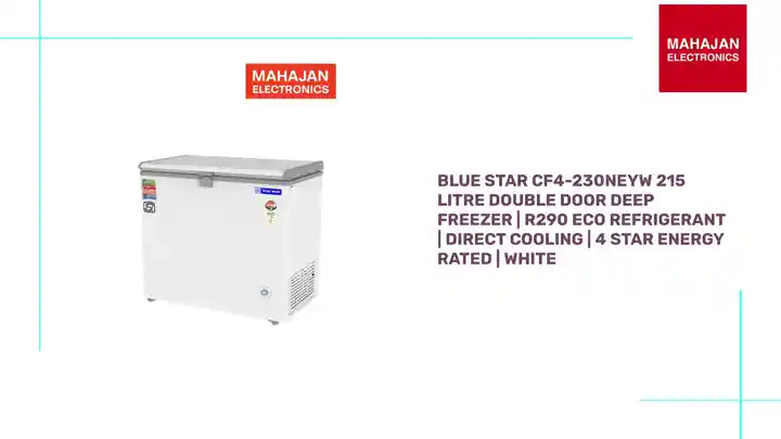 Upgrade to dependable, eco-conscious freezing with the Blue Star CF4-230NEYW Deep Freezer—available now at Mahajan Electronics with unmatched delivery, pricing, and support.