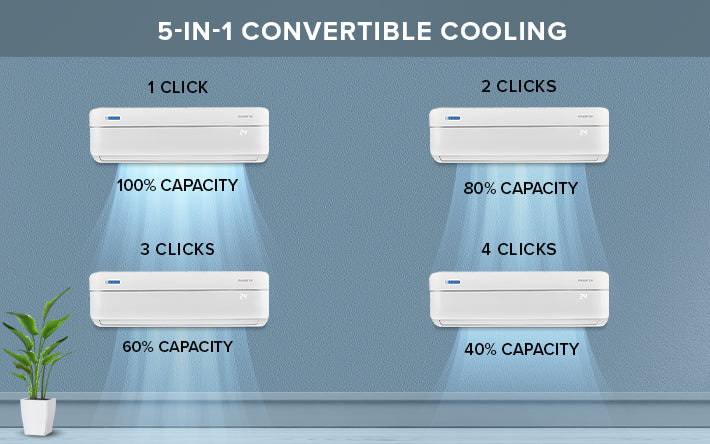 5-in-1 Convertible Cooling: Customize cooling performance across five modes to match your mood, usage, or energy-saving preferences.
