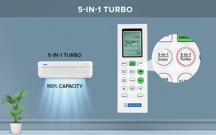 Turbo Cool Mode: Instantly brings down room temperature during peak summer heat.