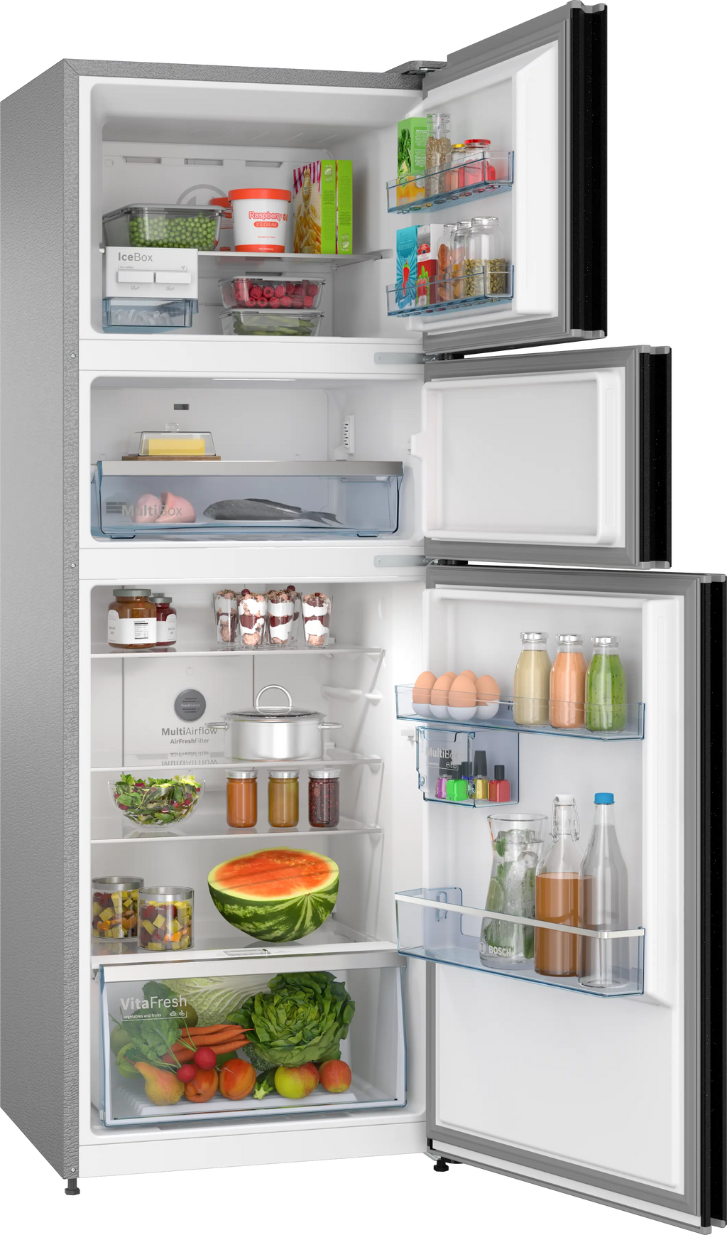 Bring home the Bosch CMC36K23NI 335L Triple Door Refrigerator and experience the perfect combination of German precision, flexible storage, and premium design.