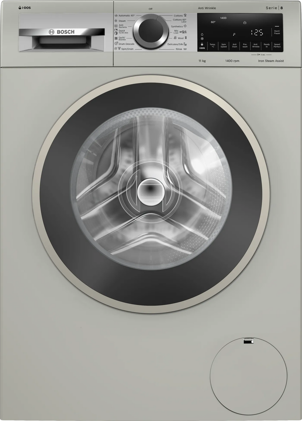 Bosch WGA264AXIN Series 8 11 kg Front Load Washing Machine – Silver Inox | i-DOS Smart Dosing | AntiStain | SpeedPerfect | Anti Wrinkle Care