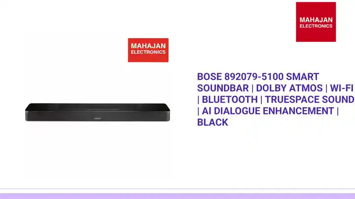 Experience total immersion with the Bose Smart Soundbar, engineered to deliver expansive Dolby Atmos sound in a sleek, compact design. Powered by proprietary TrueSpace technology and AI Dialogue Mode, it brings every scene, song, and story to life with incredible clarity and depth — redefining your home entertainment experience.