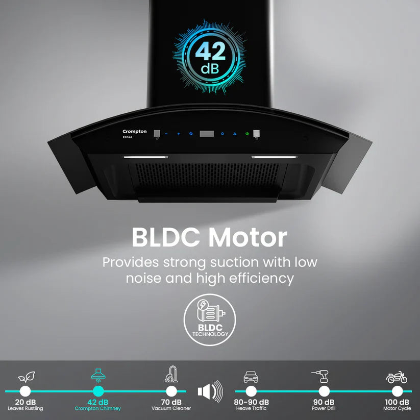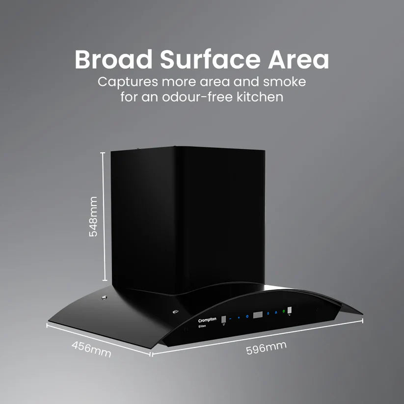 Upgrade your modern kitchen with the Crompton Eliteo Curved 60 cm Auto-Clean Chimney, engineered for powerful suction, effortless maintenance, and quiet performance. Featuring 1900 m³/hr suction, filterless technology, gesture control, and Smart On heat-sensing automation, this chimney ensures a smoke-free, fresh, and safe cooking experience—perfect for Indian kitchens and heavy-duty cooking styles.