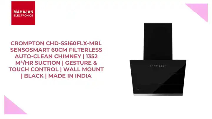 Redefine your kitchen with intelligent functionality and a premium finish. Shop the Crompton SensoSmart CHD-SSI60FLX-MBL 60cm Chimney – only at Mahajan Electronics.