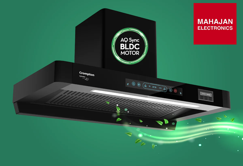 Crompton CHD-SYB90FLE-IND 75 cm Auto-Clean Filterless Chimney | 2900 m³/hr Suction | BLDC Motor | Touch + Gesture Control | Buy Online at Mahajan Electronics