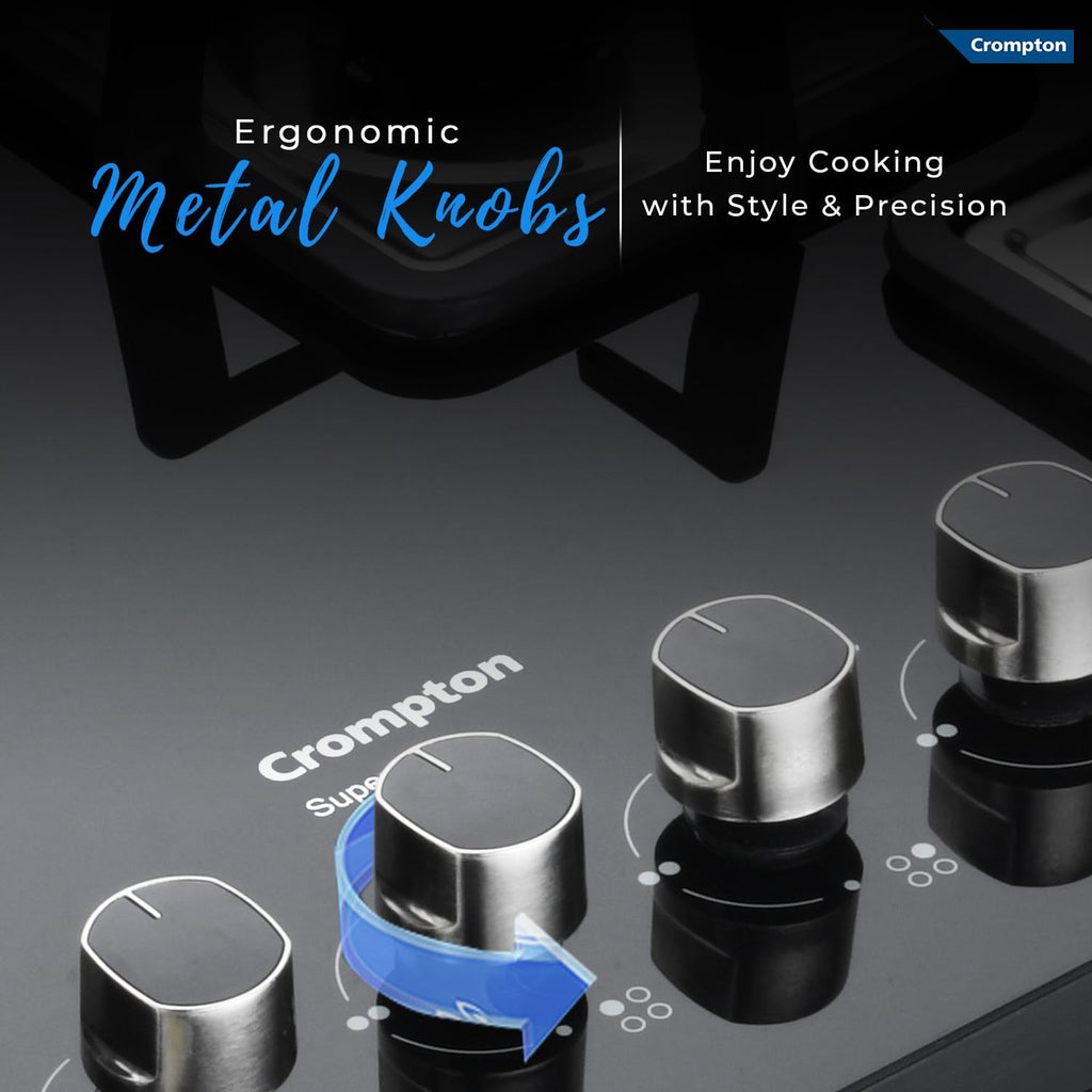 The Crompton SuperSlim Matt 78 cm Hob combines stylish design, exceptional flame control, long-lasting brass burners, and hassle-free installation — a perfect upgrade for premium kitchen spaces.