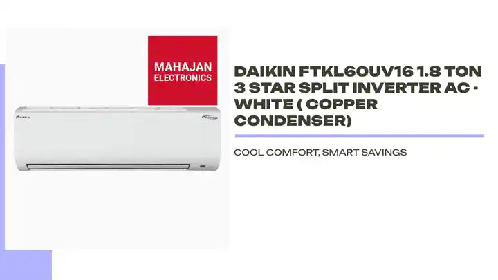 The Daikin FTKL60UV16 1.8 Ton Inverter AC combines powerful cooling, energy efficiency, and air purification to create the perfect indoor climate. Order today from Mahajan Electronics and enjoy premium cooling comfort all year round.