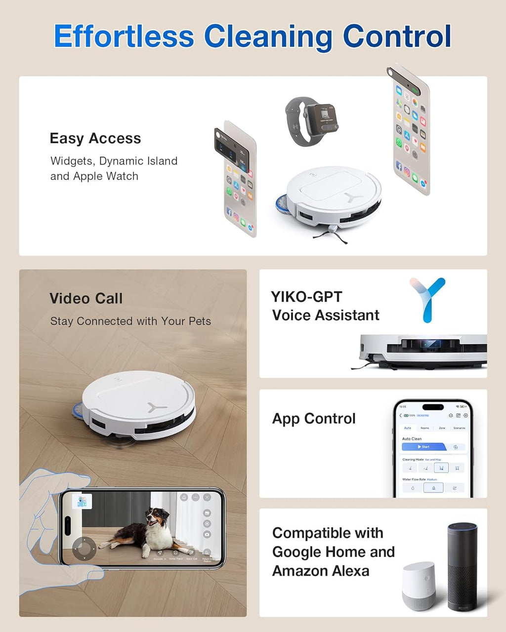 ECOVACS App, Voice (Alexa/Google), YIKO-GPT