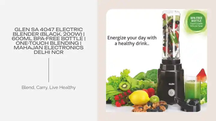 Make healthy living effortless with the Glen SA 4047 Electric Blender, designed for fast, smooth, and convenient blending. Powered by a 200W efficient motor and equipped with a 600ml BPA-free sporty bottle, this portable blender lets you blend and carry your favorite smoothies, protein shakes, or fresh juices with ease.