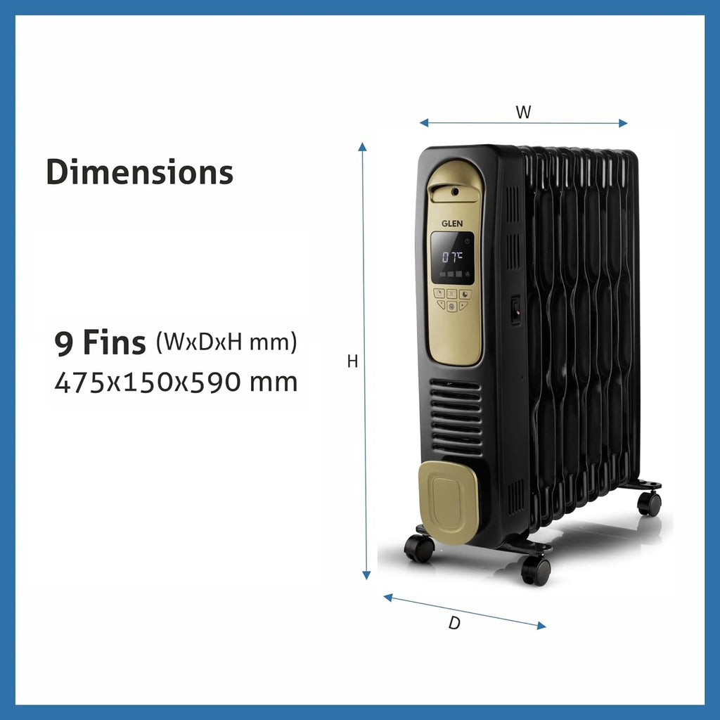 Bring home cozy comfort this winter with the Glen HA 7013 13-Fin Oil Filled Radiator, engineered for powerful yet silent heating across rooms up to 250 sq. ft. With 2900 W output, a 400 W PTC fan heater, and a digital thermostat with remote control, this premium OF radiator provides uniform warmth, advanced safety features, and modern design for your home or office.