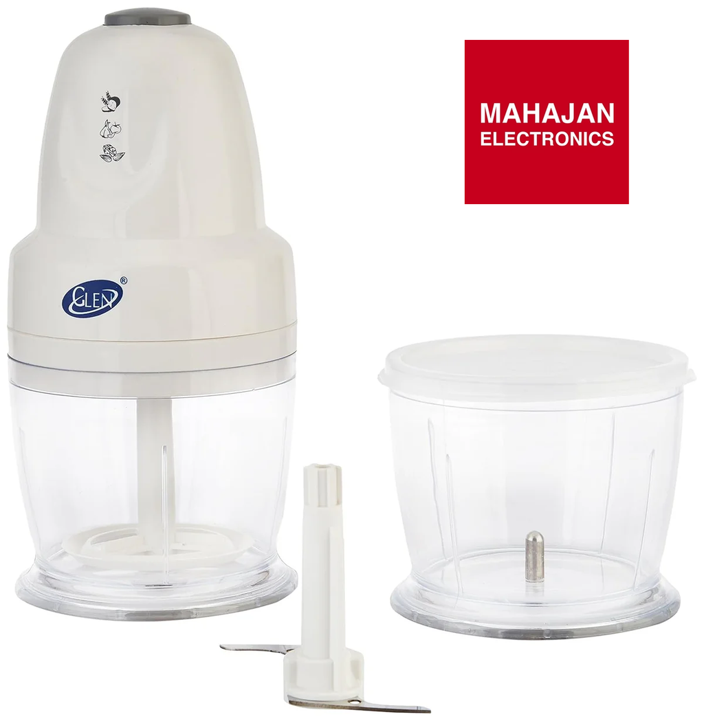 Glen SA4043 Plus Mini Electric Chopper 250W with Extra Bowl | Stainless Steel Blades | Whisking Disk | Compact Design | Mahajan Electronics Delhi NCR