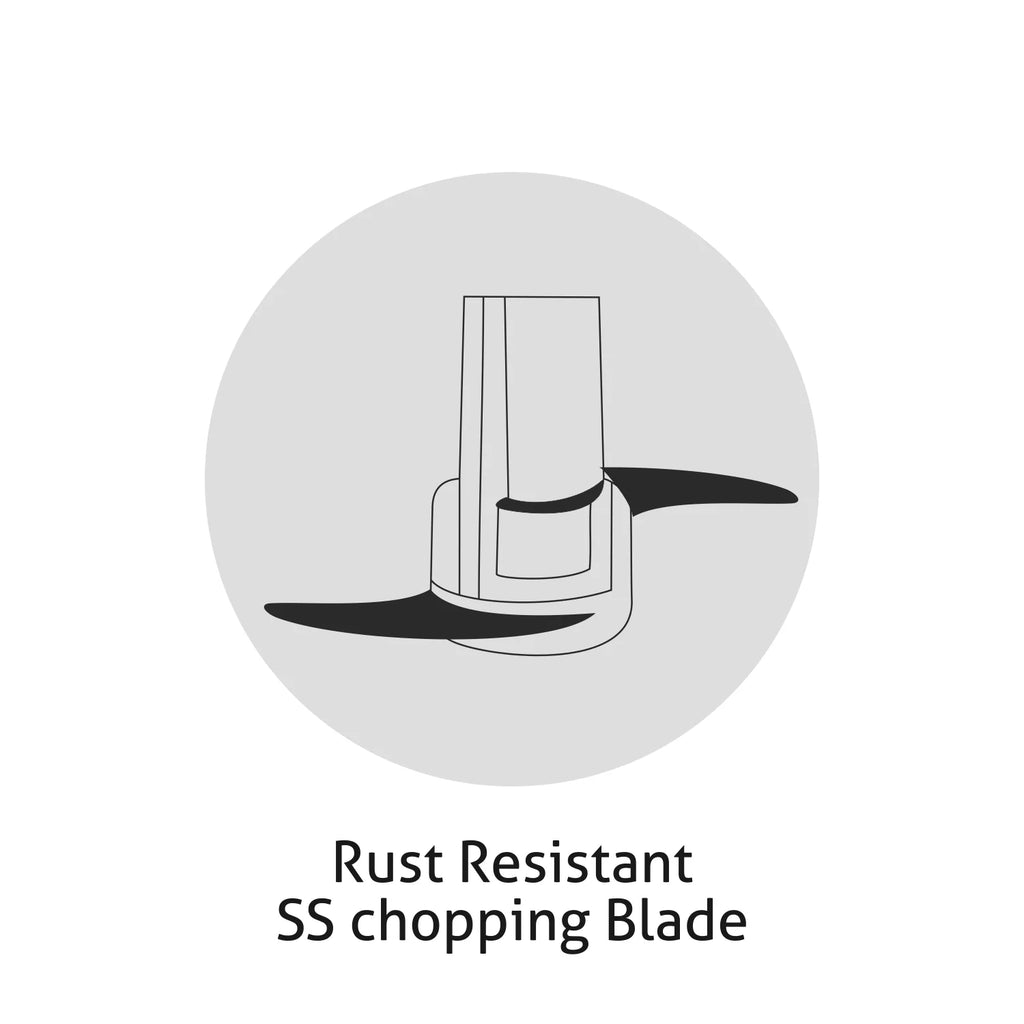 Rust-Resistant Stainless Steel Blades – Twin blades with 4 cutting edges ensure uniform chopping.