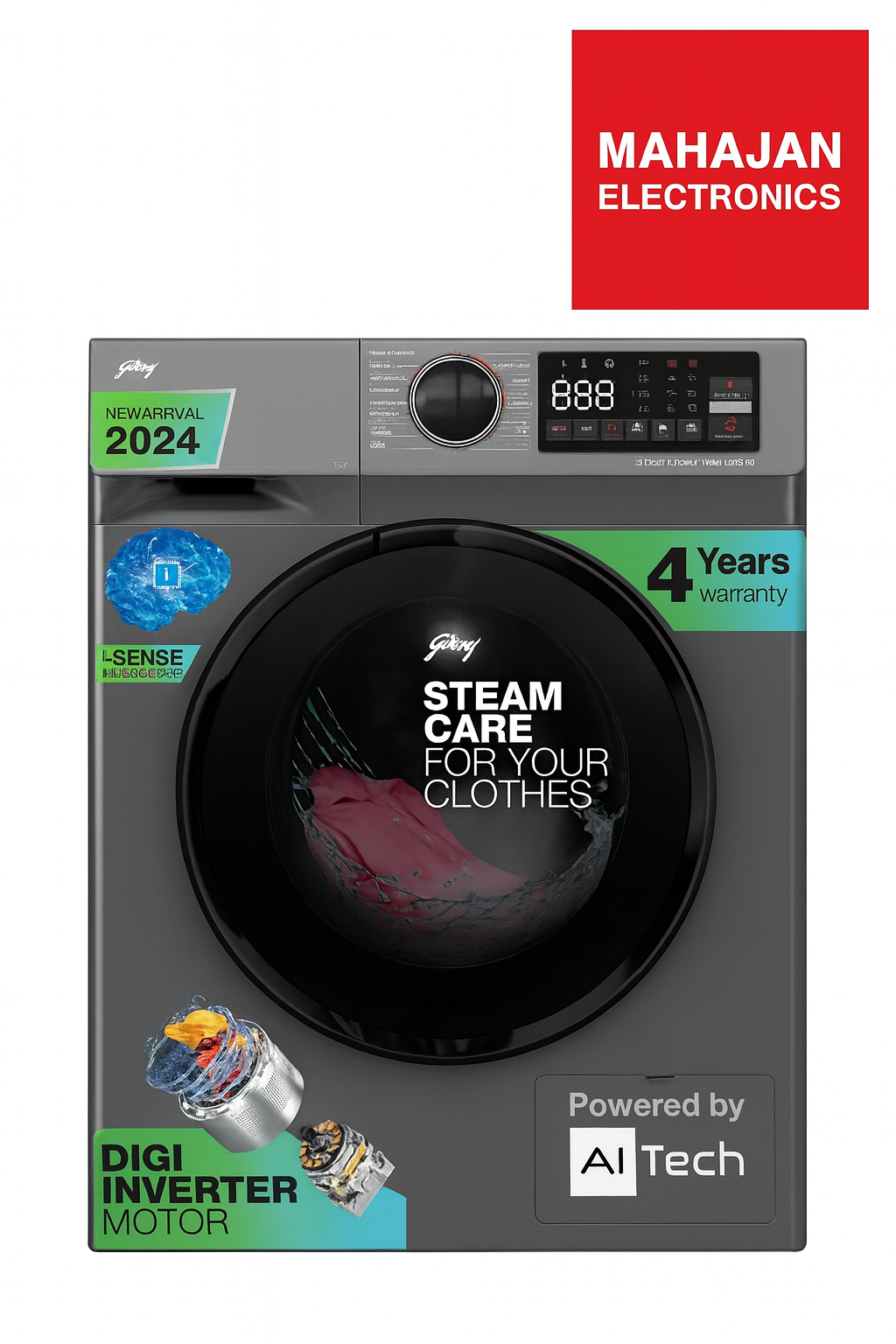 Minimal effort. Maximum performance. Choose the Godrej 10 Kg AI Washing Machine—now available at Mahajan Electronics.