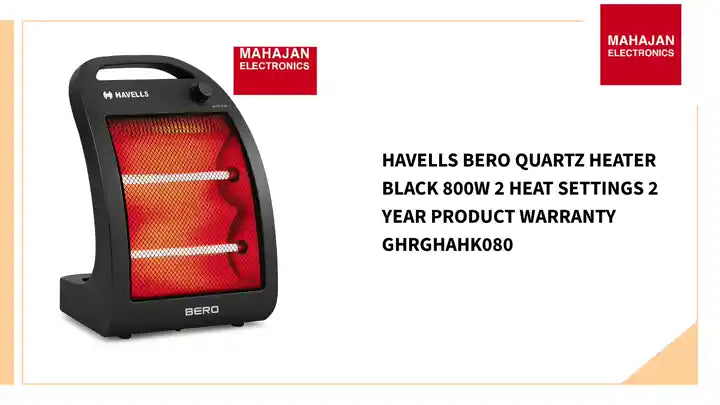 Havells Bero Quartz Heater 800W (GHRGHAHK080) | 2 Heat Settings | Quartz Tubes | Tip-Over Safety | Rust-Free Reflector | 2-Year Warranty