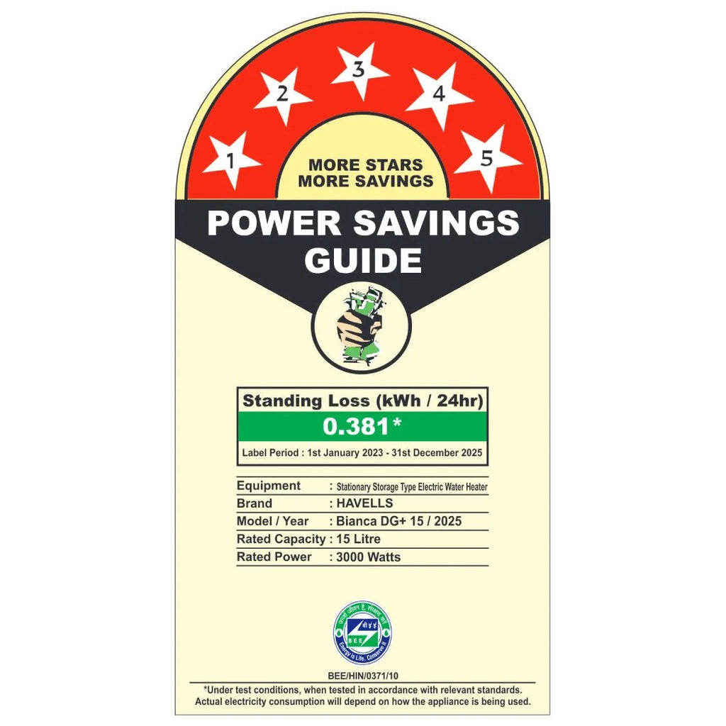 Havells Bianca DG+ 15L Convertible Storage Water Heater (GHWVBADREW15) | 3-in-1 Convertible | Remote Control | 33% Faster Heating | 5 Star RatedSmart Heating. Elegant Design. Built for Modern Indian Homes.Enjoy faster, safer, and more energy-efficient water heating with the Havells Bianca DG+ 15L Convertible Water Heater, designed with cutting-edge 3-in-1 Convertible Dual Heating Elements for optimal performance. Whether it’s a quick shower or a long relaxing bath, this intelligent geyser adapts to your needs with multiple power modes, a digital temperature display, and a wireless remote control for effortless operation. Perfect for compact to medium-sized households, it combines innovation, durability, and energy efficiency — all with Havells’ trusted reliability.