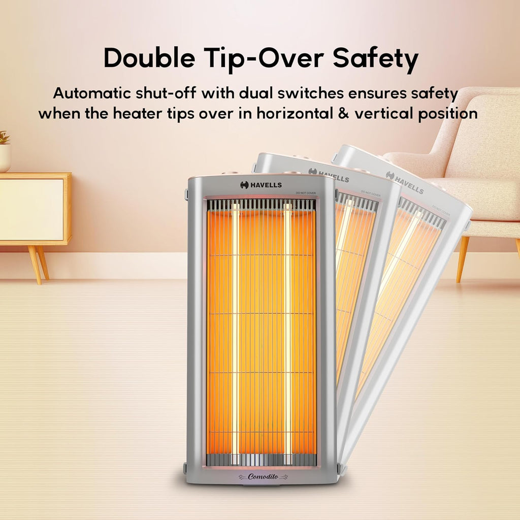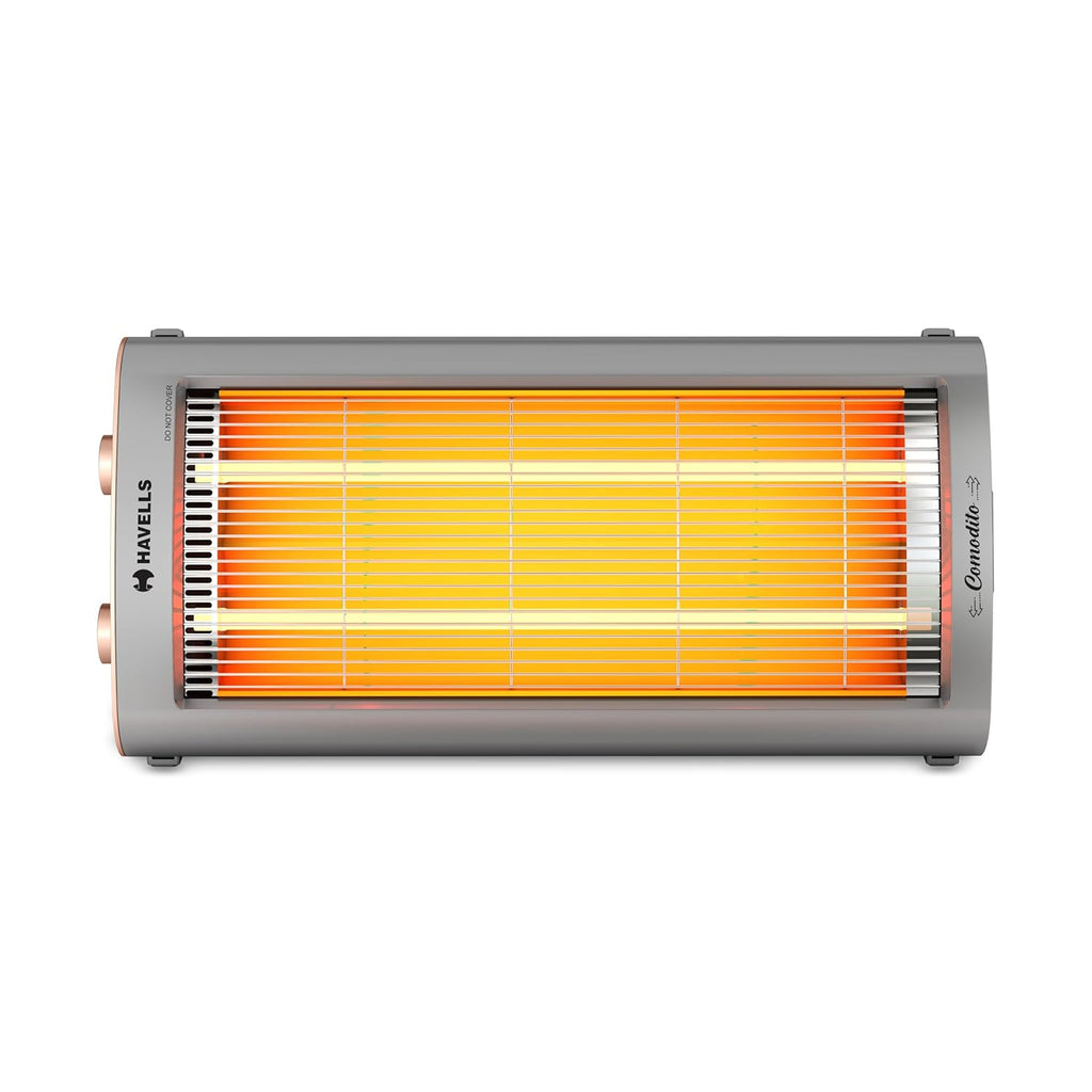 Havells Comodito 900W Room Heater | Carbon Fiber Rods, 120-Min Sleep Timer, Rust-Free Reflector, Dual Orientation | Grey – GHRGHCHE090