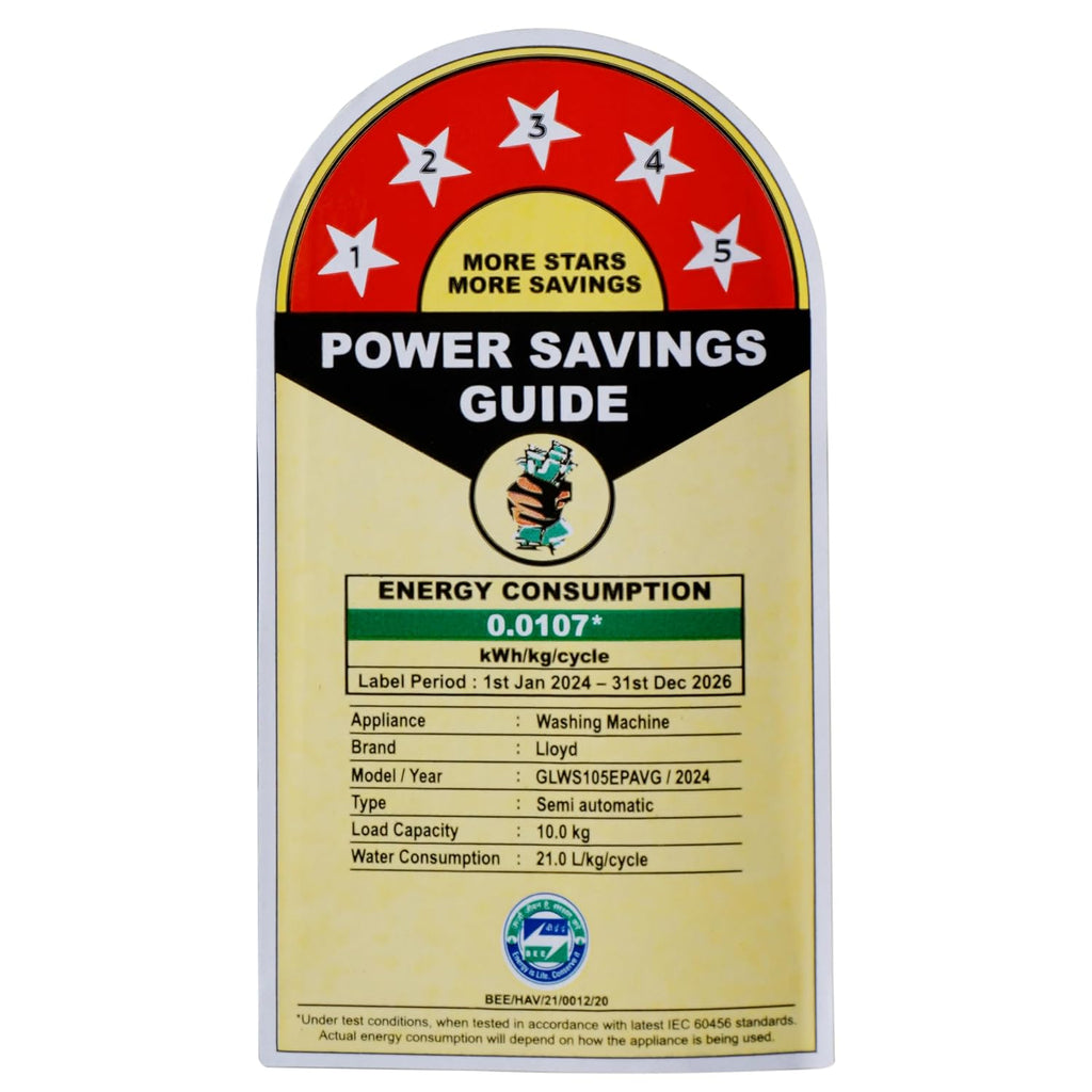 Simplify your laundry routine with the Lloyd Elante Pluss 10 Kg Semi-Automatic Washing Machine, built for heavy-duty performance, energy efficiency, and long-term durability. With its 5 Star energy rating, dual waterfall wash system, and high-speed 1300 RPM spin, this washing machine ensures faster drying and a deeper, more thorough wash — ideal for large families.
