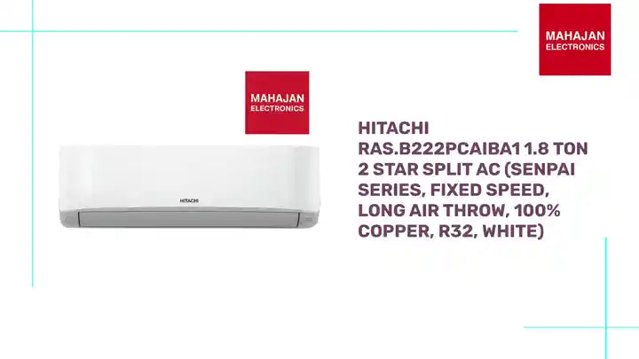Hitachi RAS.B222PCAIBA1 1.8 Ton 2 Star Split AC (Senpai Series, Fixed Speed, Long Air Throw, 100% Copper, R32, White)
