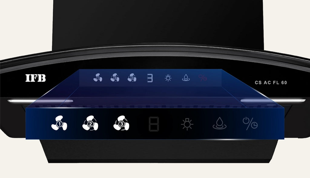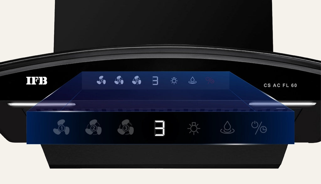 Keeps your kitchen well ventilated and free from unwanted smells. You can set the suction power from I to 3 depending on the level of fumes, smoke, and odours being generated during cooking.