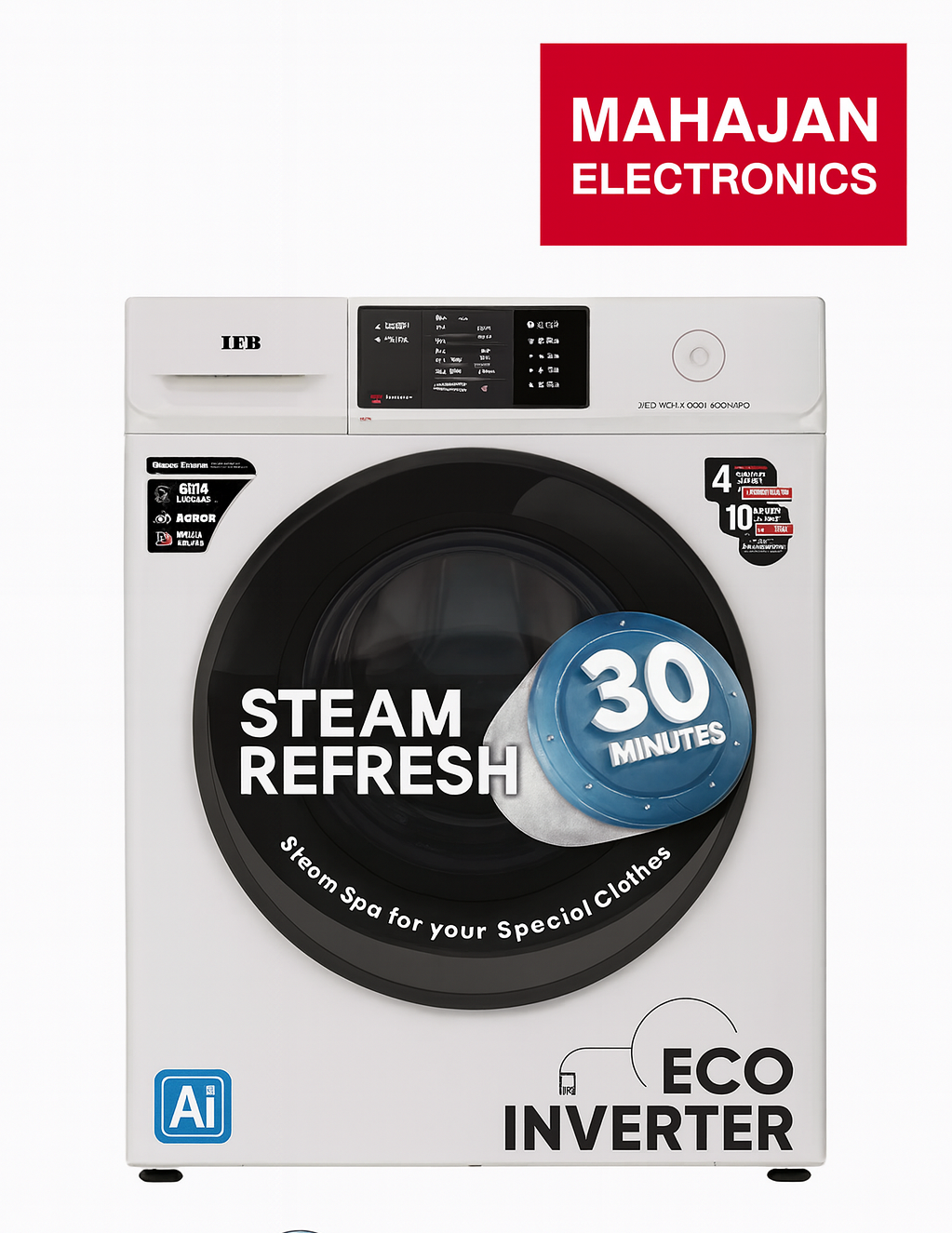 The IFB DIVA GXN 6010 CMS isn’t just another washing machine — it’s a smart laundry assistant. With AI-driven intelligence, steam sanitization, and eco-inverter power efficiency, it brings together innovation and Indian practicality. Whether it’s delicate office wear or heavy linens, expect spotless, hygienic, and wrinkle-free laundry every day — powered by IFB innovation and Mahajan Electronics trust.