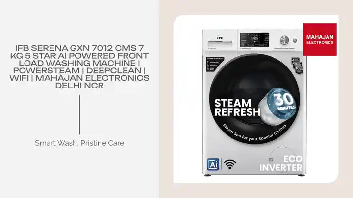 The IFB Serena GXN 7012 CMS 7 Kg AI-Powered Front Load Washing Machine combines intelligent automation with eco-friendly performance. With PowerSteam®, 9 Swirl Wash, Aqua Energie®, and WiFi connectivity, it delivers premium results while saving energy, time, and water — making it a perfect choice for modern Indian households.