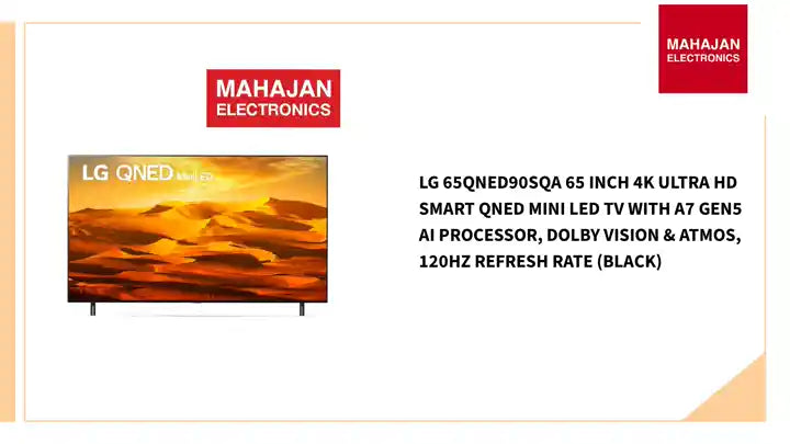 Step into a world of unmatched clarity and cinematic realism with the LG QNED90SQA 65 Inch 4K Smart QNED Mini LED TV. Powered by the α7 Gen5 AI Processor, this Mini LED marvel delivers vibrant Quantum Dot NanoCell colors, deeper contrast, precise dimming, and immersive audio—all engineered to transform your entertainment space.