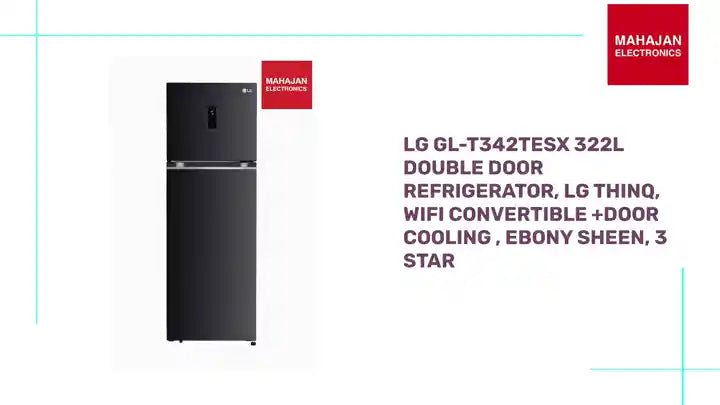 Upgrade your kitchen with the all-new LG GL-T342TESX 322L 3-Star Top Mount Double Door Refrigerator, featuring a Convertible Freezer, LG ThinQ™ Wi-Fi Control, and Smart Inverter Compressor. Finished in an elegant Ebony Sheen, this 2025 model combines intelligent features with energy efficiency, hygiene, and seamless remote control — perfect for modern Indian families seeking reliability and smart functionality.