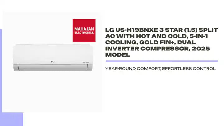 Experience the ultimate in climate control with the LG US-H19BNXE 1.5 Ton Hot & Cold Split AC, engineered to deliver high-performance cooling in summers and reliable warmth in winters. This 2025 model features Dual Inverter Compressor, 5-in-1 Convertible Cooling, Gold Fin+ anti-corrosion coating, and Ocean Black Protection, making it ideal for Indian homes seeking performance, durability, and savings.