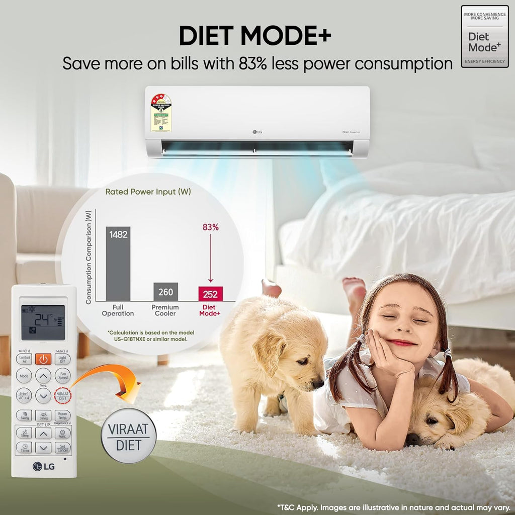 LG US-Q14ENZE 1 Ton 5 Star Dual Inverter Split AC (2026) | AI Convertible 6-in-1 | VIRAAT Mode | 4-Way Swing | Wi-Fi Ready