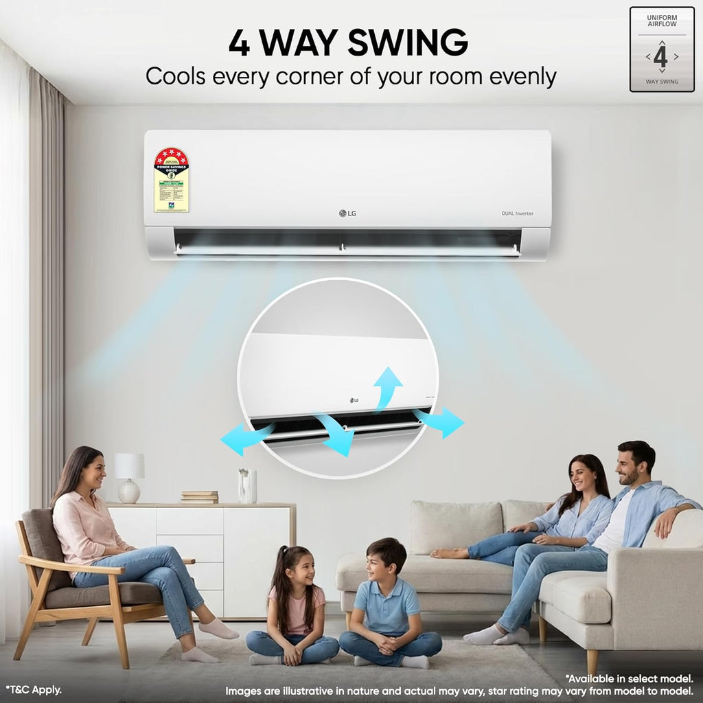 Experience a new standard of intelligent cooling with the LG US-Q14ENZE 1 Ton 5 Star Dual Inverter Split AC, engineered for modern Indian homes that demand powerful performance, ultra-low energy consumption, and AI-driven comfort.