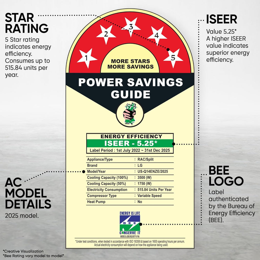 The LG US-Q14ENZE 1 Ton 5 Star AC is a perfect combination of: