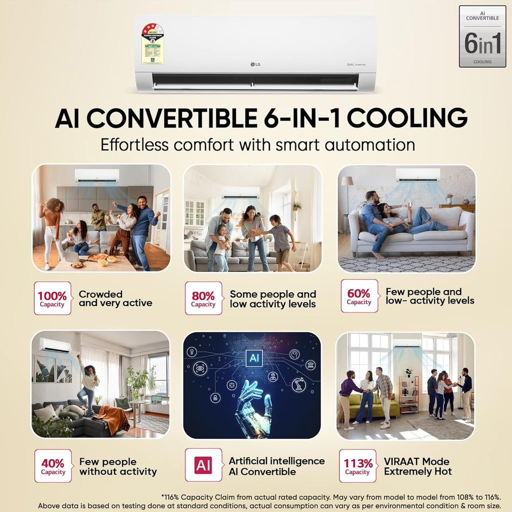 Designed with AI Convertible 6-in-1 Cooling, VIRAAT Mode, and Dual Inverter Compressor, this AC delivers instant cooling even at 55°C, making it perfect for Delhi NCR’s extreme summers.