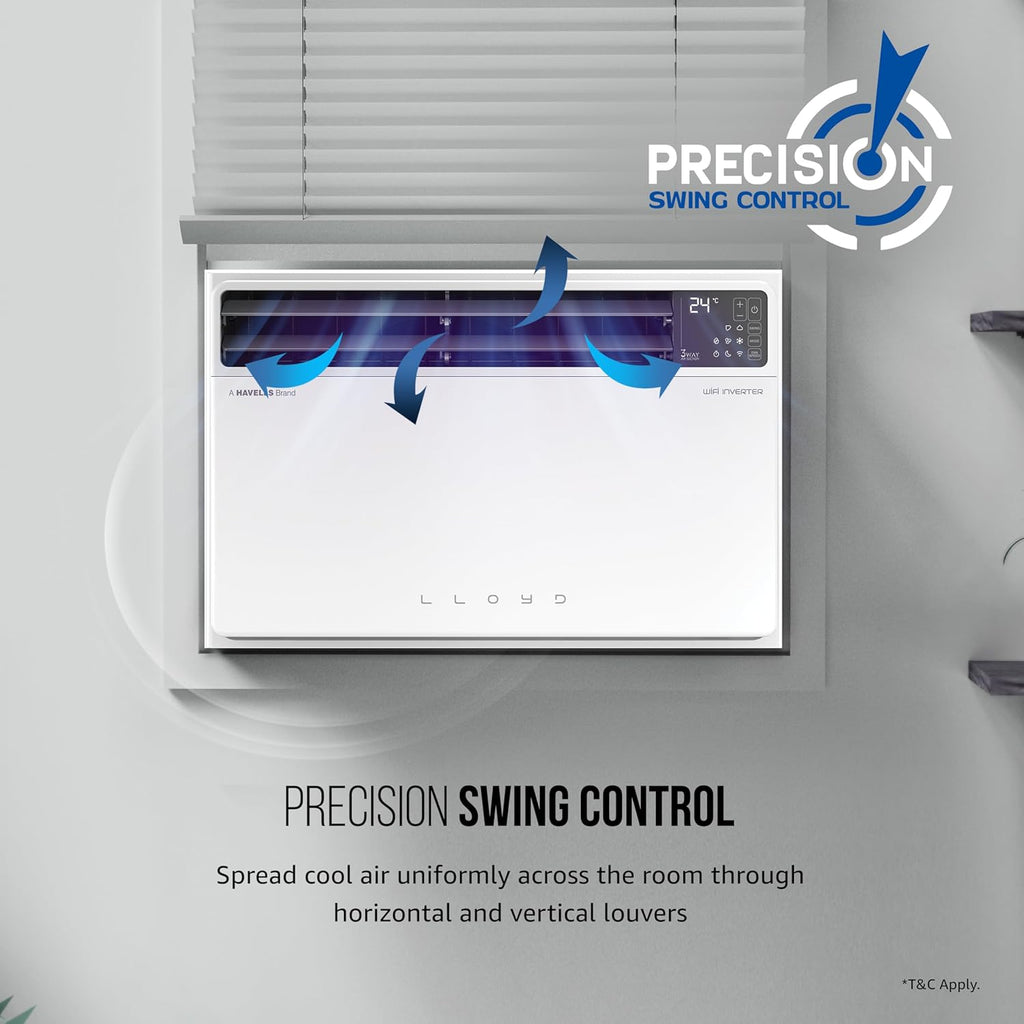 Lloyd GLW18V5FWTBR 1.5 Ton 5 Star Inverter Window AC (Copper, Convertible 6-in-1 Cooling, 4-Way Air Swing, White)