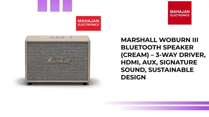 Marshall Woburn III Bluetooth Speaker (Cream) | Premium 3-Way Home Audio | HDMI, AUX, Bluetooth | Iconic Design with Sustainable Build – Buy Online at Mahajan Electronics