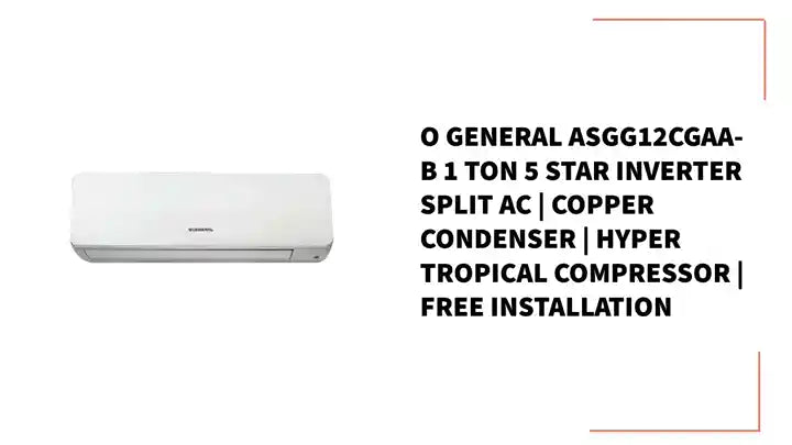 O’General ASGG12CGAA-B 1 Ton 5 Star Inverter Split AC with Copper Condenser | Hyper Tropical Compressor | Human Sensor | Free Standard Installation | Made in India