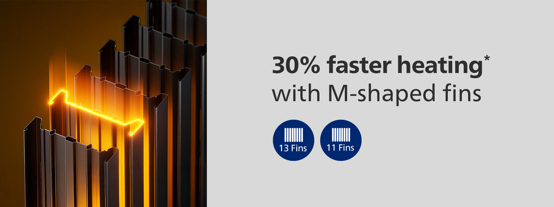 The advanced fin structure increases surface area → quicker warming → more efficient heating → lower energy loss.