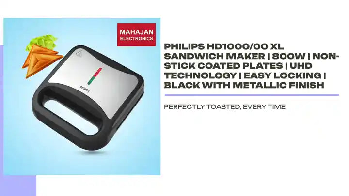 Philips HD1000/00 XL Sandwich Maker | 800 W | Non-Stick Coated Plates | UHD Heating Technology | Easy Locking | Black with Metallic Finish