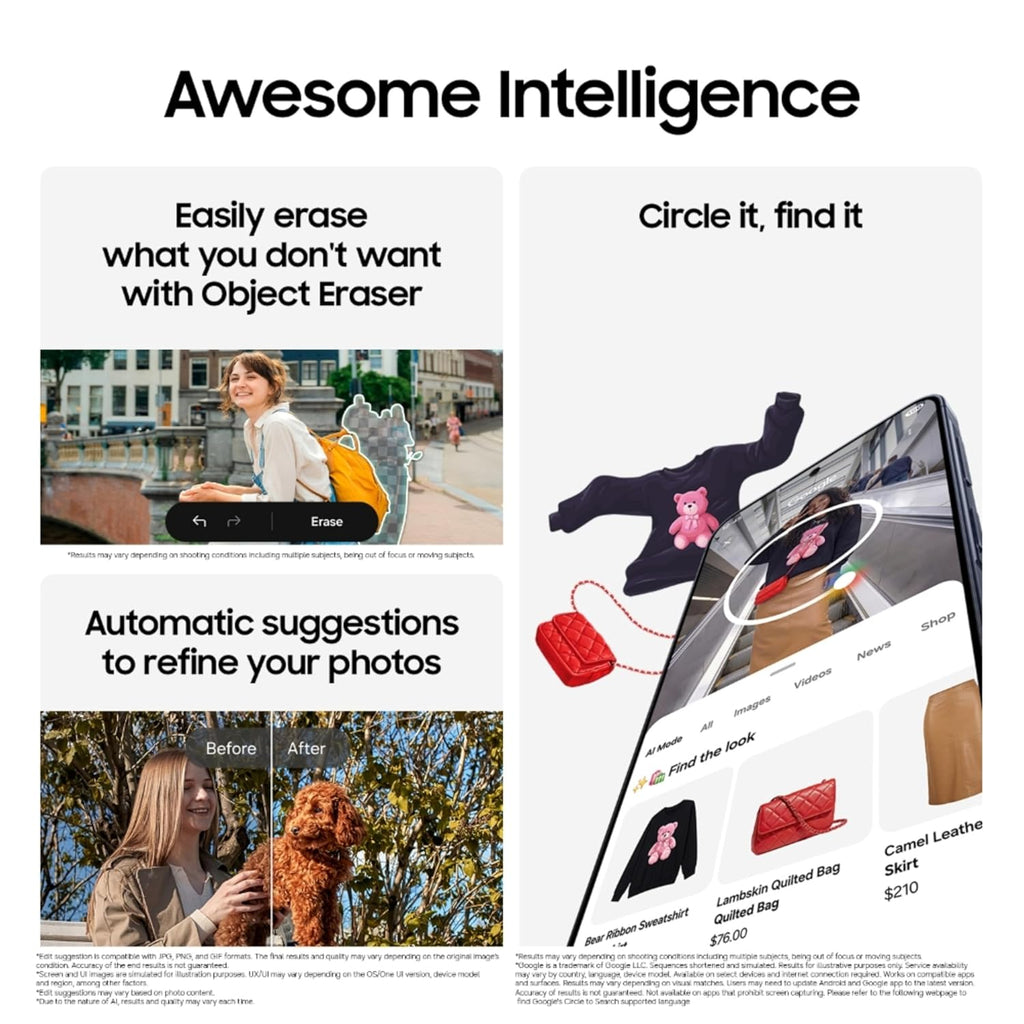 Awesome Intelligence - With in-built Personal AI assistants - Bixby, Gemini Live, and Perplexity, it offers the best agentic AI experience. Enhanced Circle to Search lets you search-the-look and try-on the latest fashion virtually. Get Defense grade security with Samsung Knox, Hassle free payments with Tap and Pay on Samsung Wallet and seamless experience with the latest One UI 8.5.