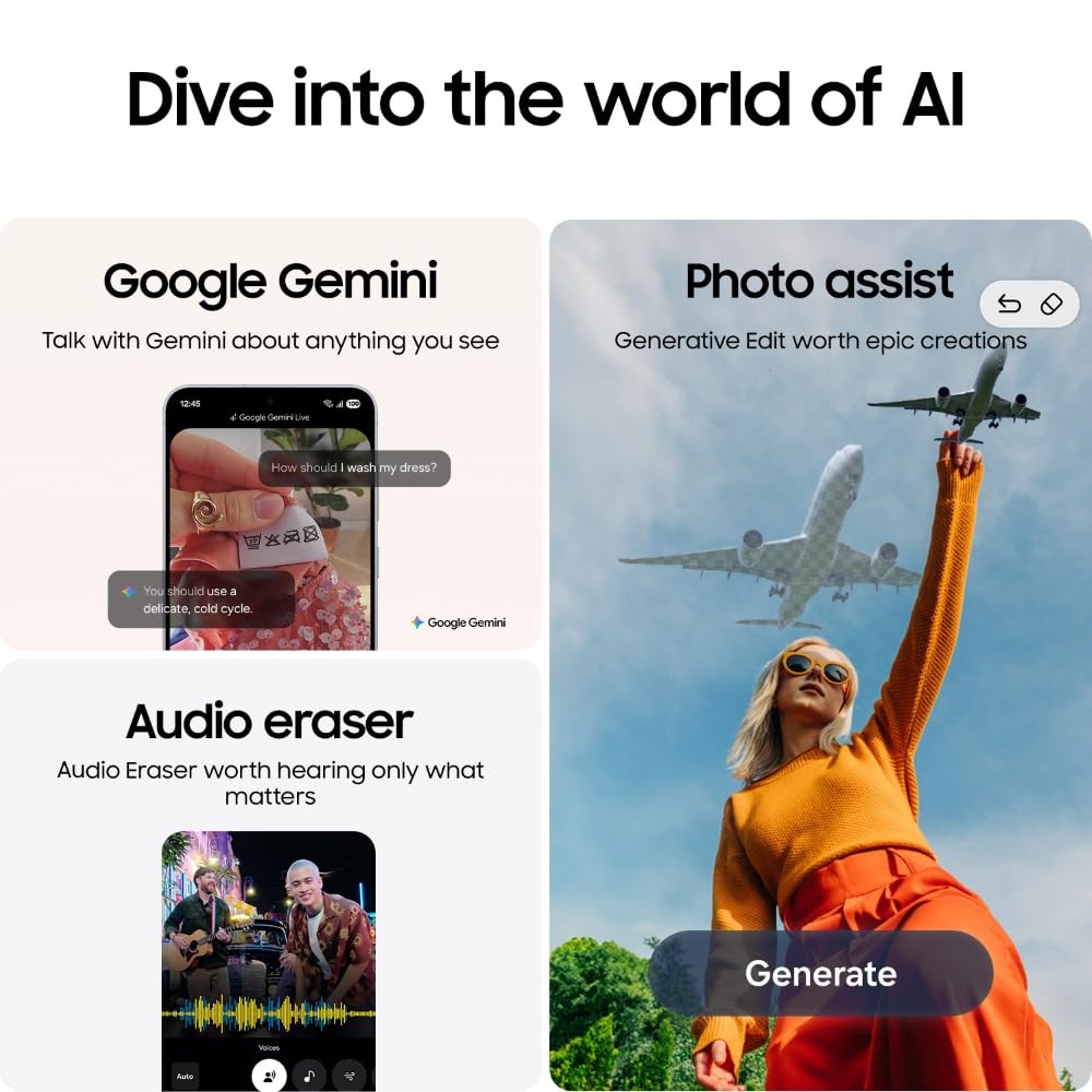 • AI for All - Enter the new era of Galaxy AI with a true AI companion that stays one-step ahead of your needs. Now you can perfect your shots with AI-powered Generative Edit of Photo Assist, remove background noise with Audio Eraser or edit smarter and faster with Auto Trim, seamlessly on the all-new One UI 8.0. And, the best part is you can keep your personal data safe with complete on-device protection powered by Knox vault.