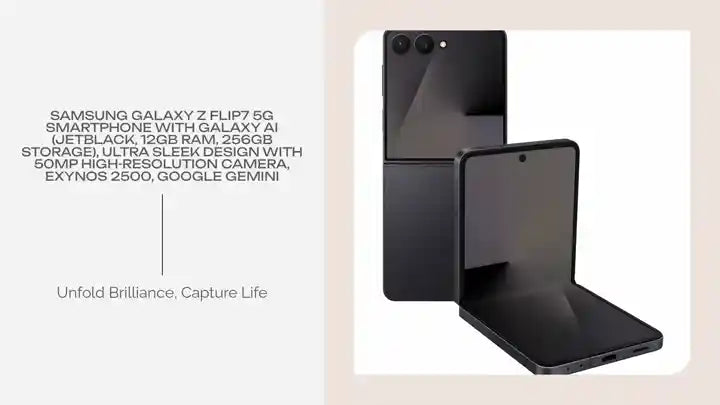 Samsung Galaxy Z Flip7 5G Smartphone with Galaxy AI (JetBlack, 12GB RAM, 256GB Storage), Ultra Sleek Design with 50MP High-Resolution Camera, Exynos 2500, Google Gemini
