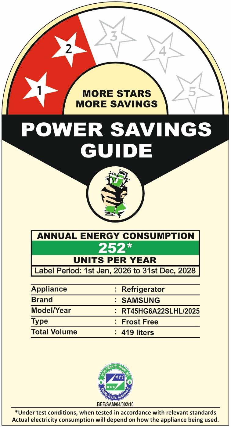 Upgrade your kitchen with the Samsung RT45HG6A22SLHL 419L Bespoke AI Refrigerator, designed for modern Indian homes that demand smart technology, flexible storage, and long-lasting freshness. Powered by AI Energy Mode, Convertible 5-in-1 cooling, and Twin Cooling Plus, this refrigerator delivers intelligent performance with up to 10% extra energy savings.