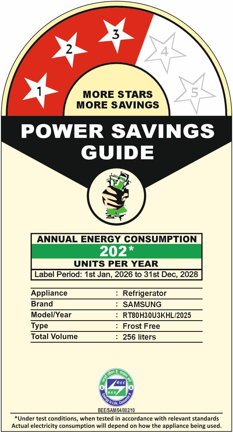 Experience powerful performance, flexible storage, and energy savings with the Samsung 256 Litres Digital Inverter Refrigerator.