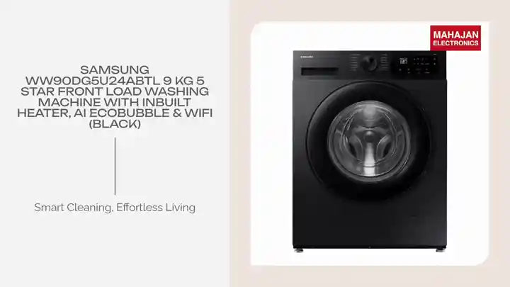 Samsung WW90DG5U24ABTL 9 Kg 5-Star Fully Automatic Front Load Washing Machine – Inbuilt Heater, AI EcoBubble, Smart WiFi Control (Black)