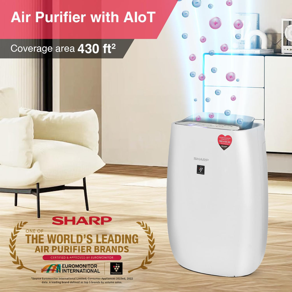 SHARP FP-J52M-W Smart Wi-Fi Air Purifier for Home (430 Sq. Ft | HEPA + Carbon + Pre Filter | PM2.5 Display | Plasmacluster Ion Technology)