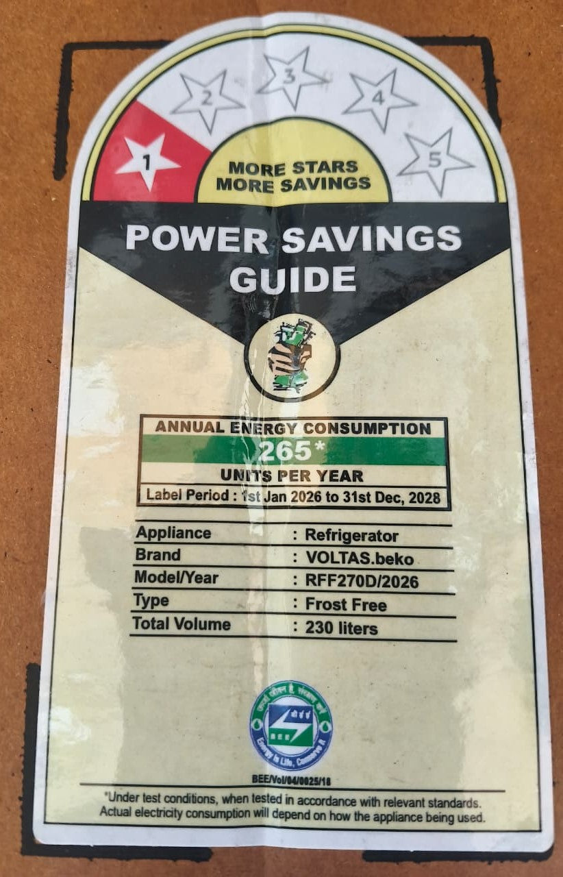 The Voltas Beko 230L 1 Star Frost Free Refrigerator (RFF270D/1W0V100RXID) delivers powerful performance, superior freshness retention, and elegant aesthetics—making it an ideal addition to any modern Indian home. With advanced technologies like NeoFrost™, StoreFresh+™, ProSmart™ Inverter, and IonGuard™, you get a premium cooling experience at an unbeatable value.
