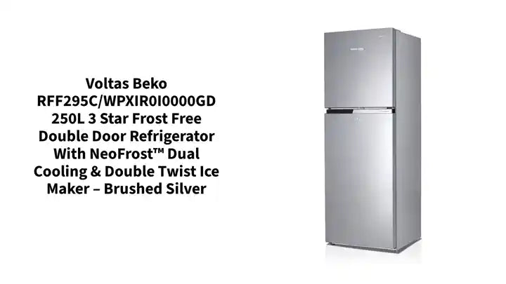 The Voltas Beko RFF295C/WPXIR0I0000GD 250L 3 Star Frost Free Double Door Refrigerator is designed for modern Indian households that value style, energy efficiency, and lasting freshness. With its NeoFrost™ Dual Cooling technology, premium Brushed Silver finish, and efficient frost-free operation, it ensures your food stays fresh longer while maintaining optimal moisture levels in every compartment.