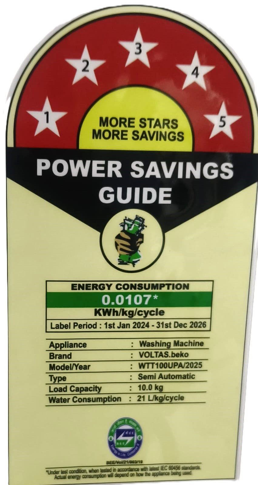 Star Rating: 5 Star – Superior Energy Efficiency